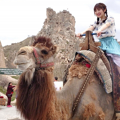 성우 우에사카 스미레의 사진, 트램펄린 체험을 하고 있는 모습