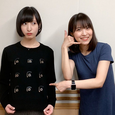 성우 사쿠라 아야네 & 오오니시 사오리의 사진, 티셔츠 디자인이 특이하네요.