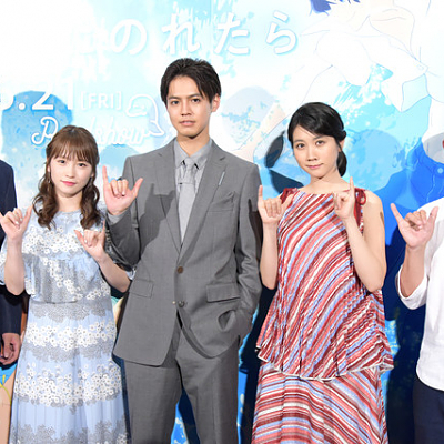 극장 애니메이션 '너와, 파도를 탈 수 있다면'의 완성 피로 무대 인사 사진