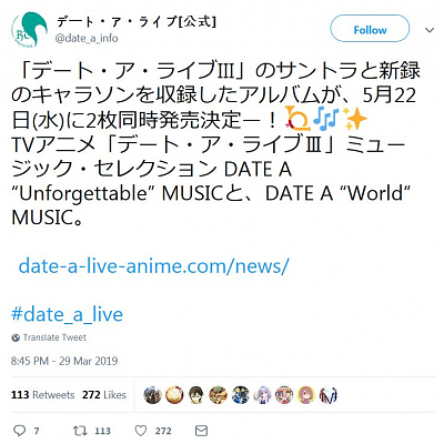 TV 애니메이션 '데이트 어 라이브 III'의 BGM & 캐릭터송 앨범 2작품 동시 발매