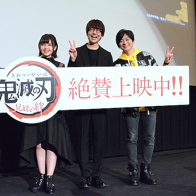 애니메이션 '귀멸의 칼날 남매의 유대'의 개봉 첫날 무대 인사 사진