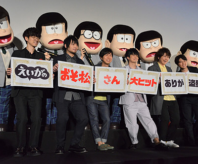 '극장판 오소마츠씨'의 무대 인사에 여섯쌍둥이 담당 성우 6명이 집합한 모습