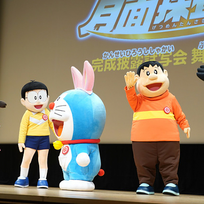 '극장판 도라에몽 노비타의 월면탐사기'의 완성 피로 무대 인사 사진