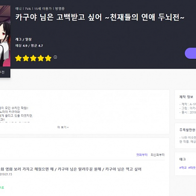 [라프텔] 『카구야 님은 고백받고 싶어 ~천재들의 연애 두뇌전~』 1화 업로드