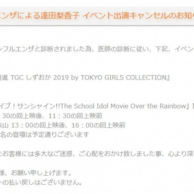 성우 아이다 리카코가 인플루엔자에 걸린 모양입니다.