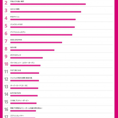 도쿄 애니메이션 어워드 페스티벌, 팬 투표로 선정된 베스트 100 발표