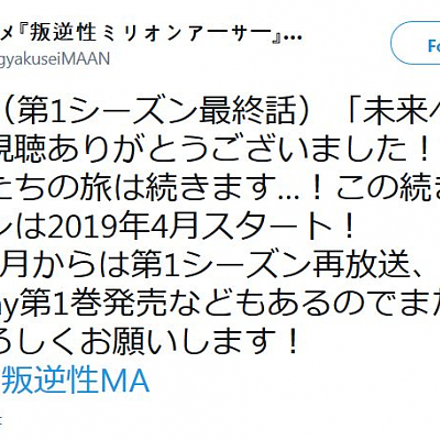 TV 애니메이션 '반역성 밀리언 아서' 제 2시즌은 2019년 4월에 방송 예정