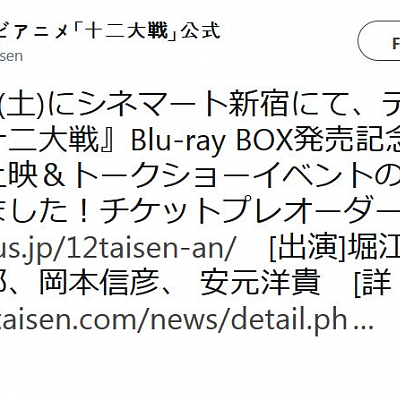 '십이대전' 블루레이 박스 발매 기념 철야 상영 & 토크쇼 이벤트 개최 소식