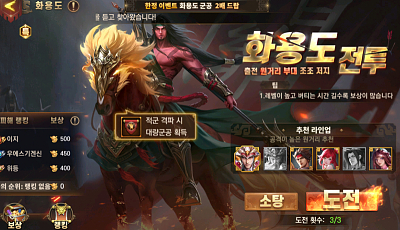 삼국지 혼 화용도 전투 군공 이벤트 시작했어요.