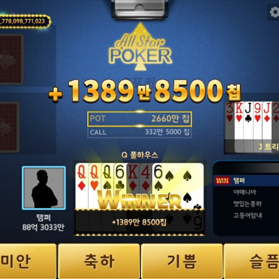 올스타포커하다가 오랜만에 뜬 풀하우스!