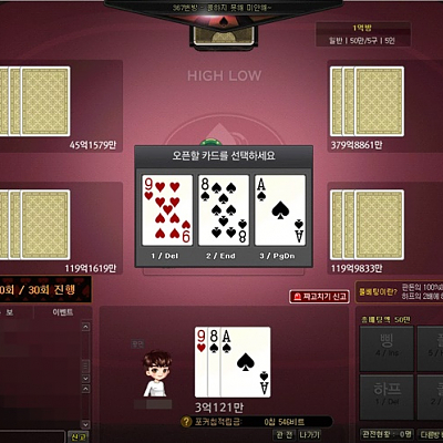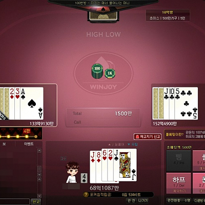 윈조이포털에서 하이로우 원페어 딱 걸렸는데...