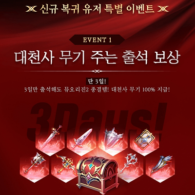 대천사무기 준다길래 뮤오리진2 바로복귀=