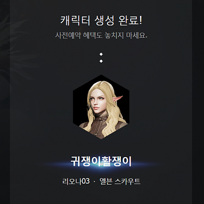 리니지2M 캐릭 엘븐스카우트로 사전생성한 ㅎㅎ
