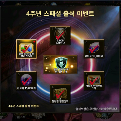 내일 영웅 4주년 스폐셜 보상으로 강화하락권 받습니다.