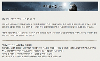 나이트 크로우 피드백 빠르군요.