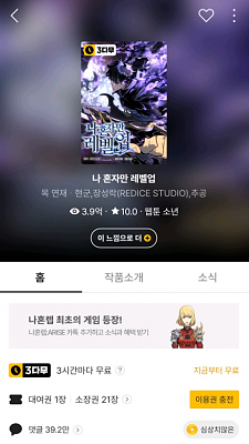 카카페에서 나혼렙 AIRSE 많이 밀어주네요
