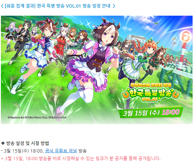 우마무스메 한국 특별방송 일정