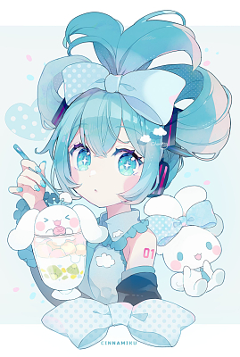 하츠네 미쿠짱 X 시나몰 콜라보 일러~!!🩵🩵👍👍[4]