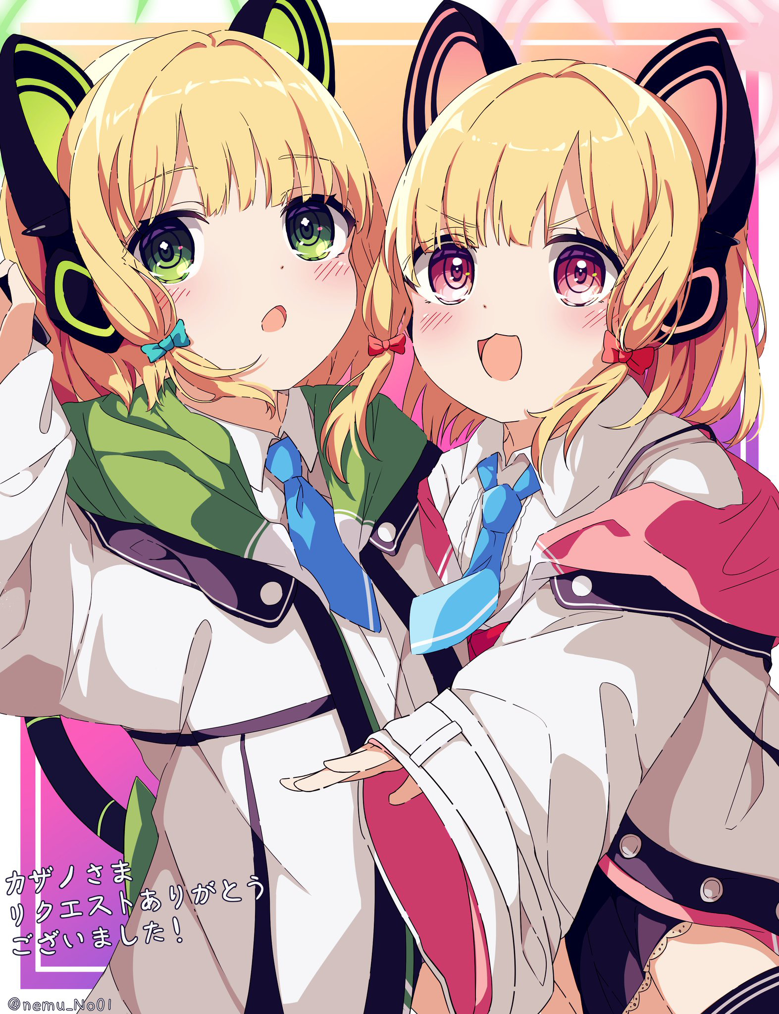 유희 [블루아카이브] 사이바 미도리, 사이바 모모이 작성일시 : 2022. 01. 25 (21:34) 조회 : 1,772 / 댓글 : 1 출처(링크) : https://www.pixiv.net/artworks/95771822 5추천 글쓰기스크랩 신고