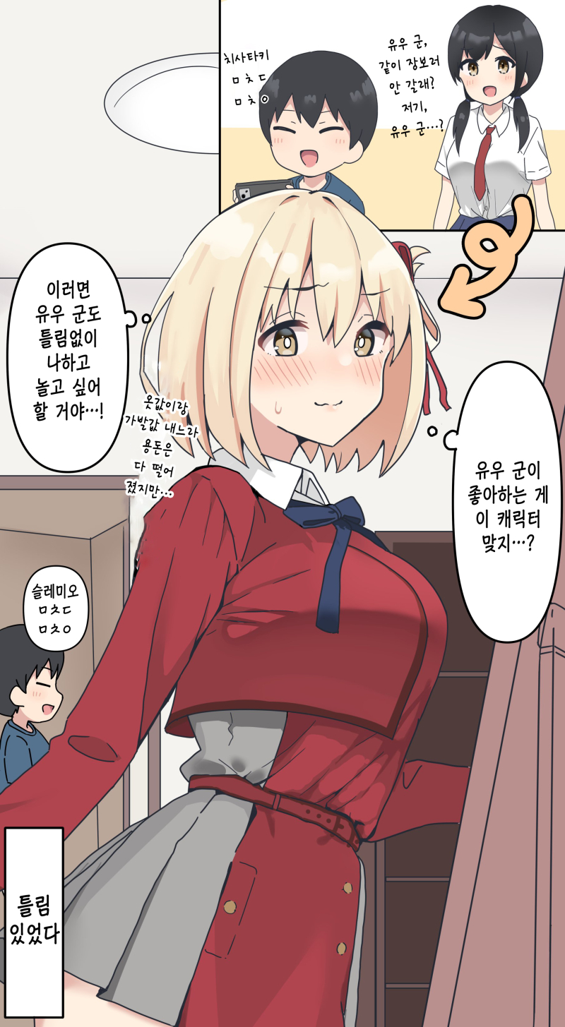 rhtjdud 브라콘 누나는 오타쿠 남동생에게 관심받고 싶다 작성일시 : 2025. 12. 12 (00:50) 조회 : 272 / 댓글 : 2 우연히 발견한 일본 오리지널 웹코믹을 한국어로 번역한건데 누나가남동생에게 관심을 끌기 위해 코스프레를 하는데 캐릭터들 보니까리코리스 리코일의 니시키기 치사토, 스파이 패밀리의 아냐 포저,케이온의 나카노 아즈사, 봇치 더 록의 고토 히토리가 있네요^^ 출처(링크) : https://blog.naver.com/sniperriflesr2/222935560810 5추천 글쓰기스크랩 신고