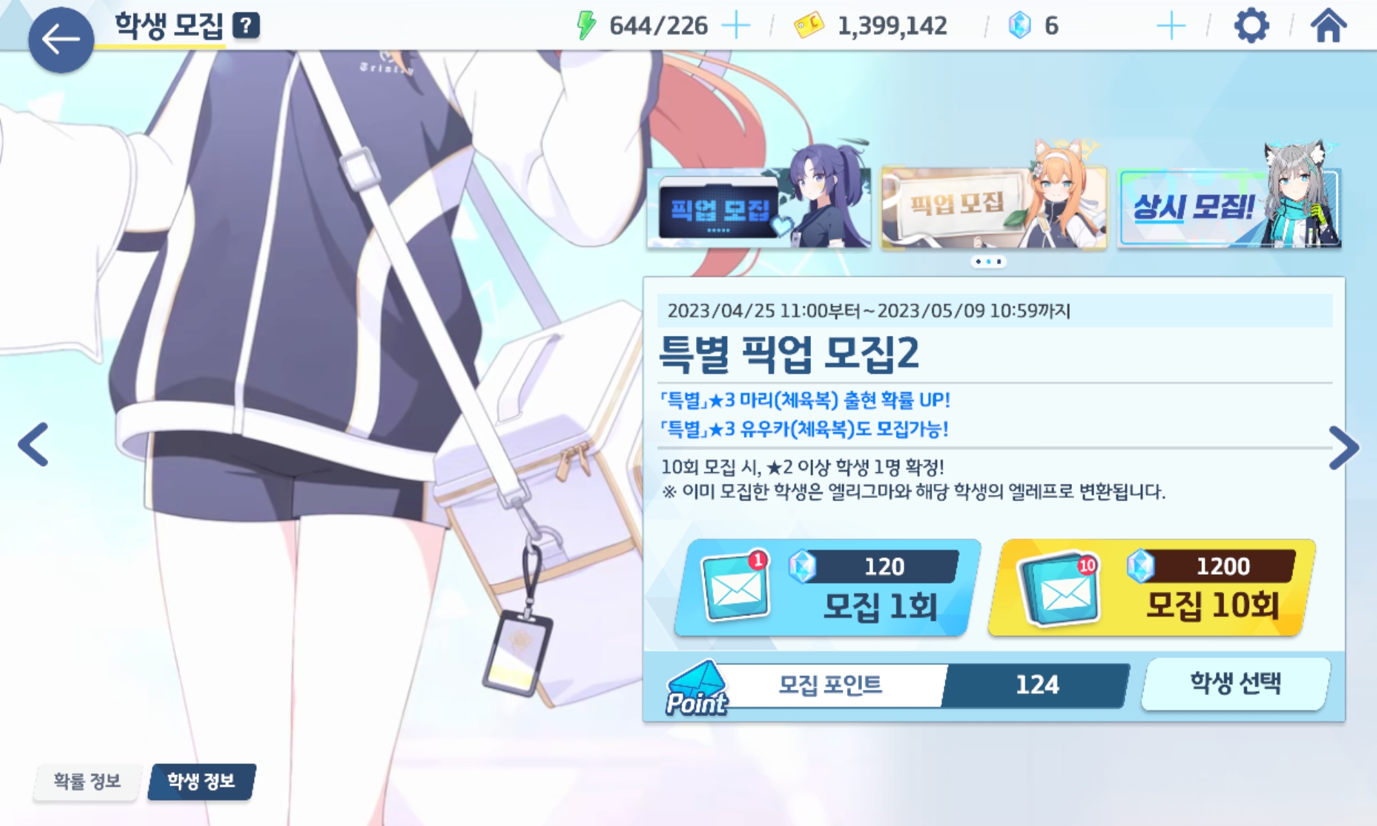 유희 [주의] 4월 25일 화요일 가챠 작성일시 : 2023. 04. 26 (01:17) 조회 : 803 / 댓글 : 0 https://www.pixiv.net/artworks/105876225유우카(체육복) = 체유카 뽑고 메모리얼도 개방!청휘석 모잘라서...충전을 하던지 모으던지 해서마리(체육복) = 체마리는 천천히 뽑아야 겠네요. 2추천 글쓰기스크랩 신고