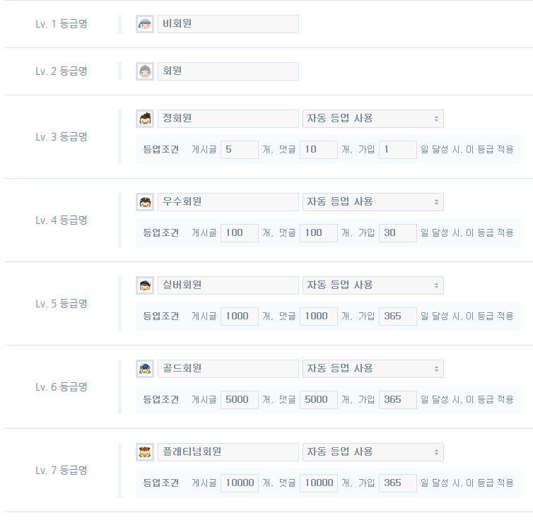 온나 자동등업 시스템을 추가하였습니다. 작성일시 : 2015. 04. 26 (17:14) 조회 : 1,702 이미 조건을 충족하였을 경우, 게시물을 작성할 때마다 순차적으로 등업됩니다.등업조건은 아래와 같습니다. 글쓰기스크랩 신고