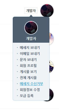 온나 메세지 수신거부 수단 도입 안내 작성일시 : 2015. 08. 05 (20:03) 조회 : 1,533 안녕하세요. 온나다입니다. 메세지 수신거부 수단을 도입하였습니다.수신거부할 회원의 닉네임을 클릭하여 메세지 수신거부를 클릭하면, 해당 회원으로부터 메세지를 받지 않습니다.해제 방법은 다시 닉네임을 클릭하여 수신거부 해제를 하면 됩니다. 더 나은 서비스를 제공하도록 하겠습니다. 고맙습니다. 글쓰기스크랩 신고